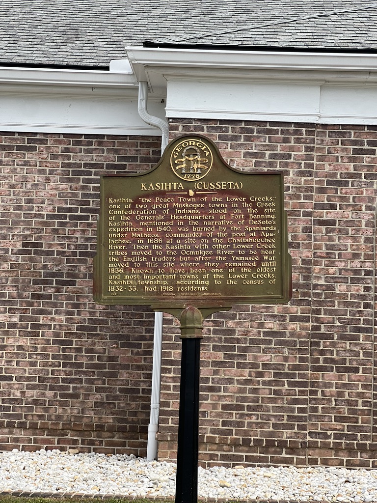 One of the most important tribal towns in this area was Kasihta (also spelled Kashita or Cusseta). Historical documentation indicates that Kasihta was located near what is now Fort Benning, along the Chattahoochee River. Over time, the name evolved into Cusseta, which remains the county seat of Chattahoochee County today.